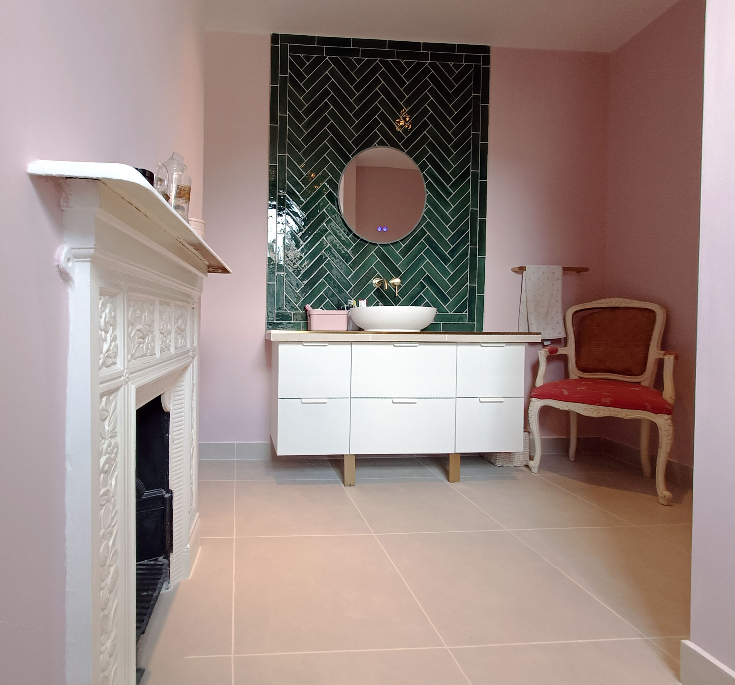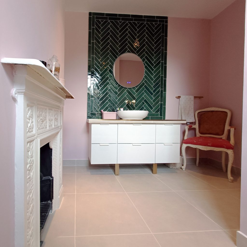 Tired of a small dull bathroom and a poorly functional spare room, for our client we proposed to merge the spaces resulting in a comfortable, bright, colorful and whimsical bathroom that introduced a new ritual of wellness in the dynamics of this hip family.