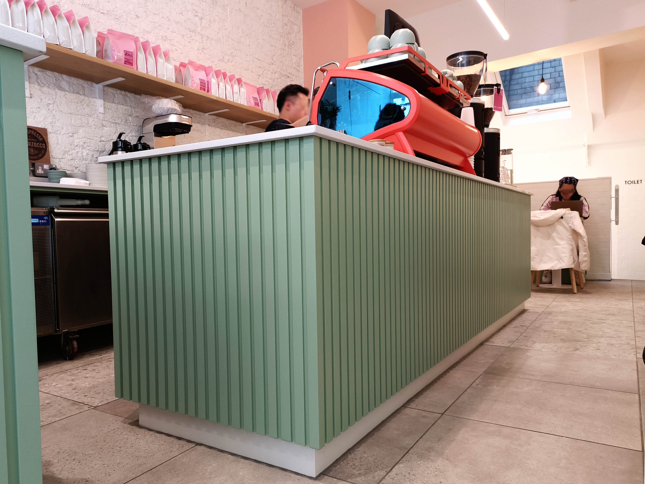 This cute coffee joint replaced a takeaway shop in a super prime location of the bustling Farringdon area in London.